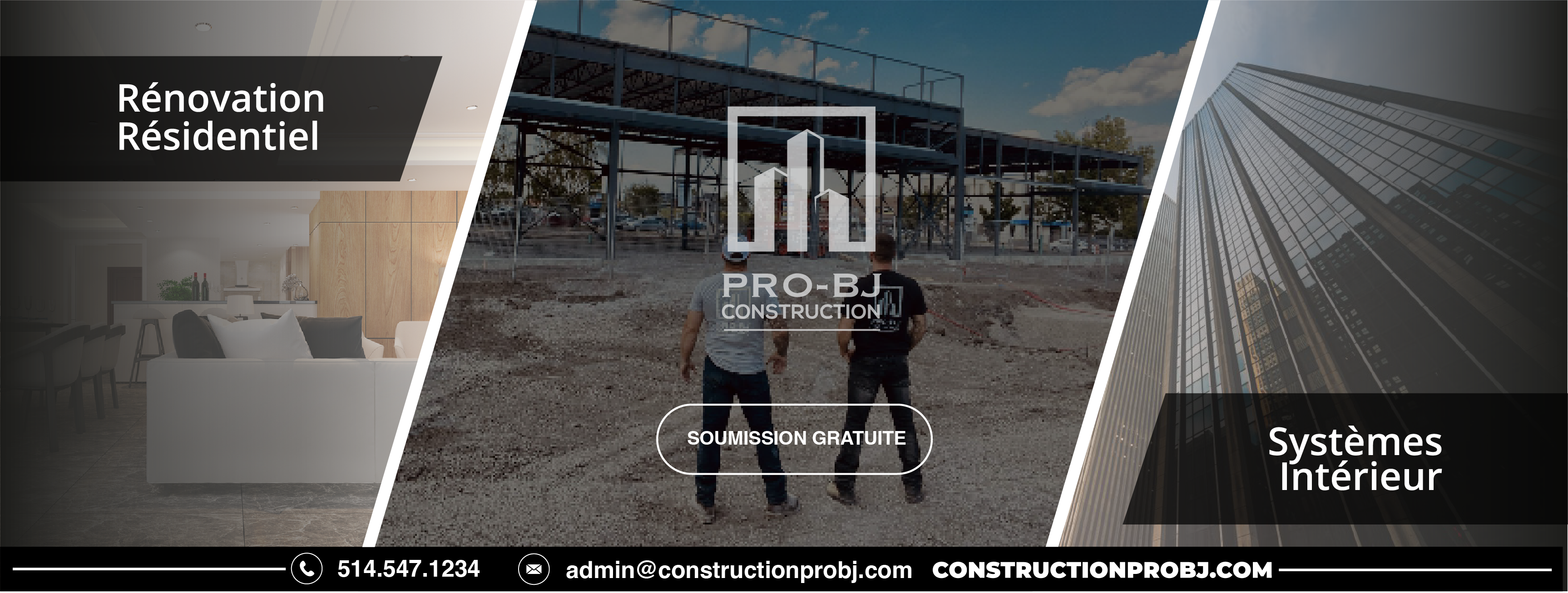 Pro-BJ Construction est une entreprise de construction de confiance spécialisée dans les systèmes intérieurs commerciaux et la rénovation résidentielle. Nous offrons une gamme complète de services pour tous vos projets de rénovation, allant de la conception à la construction, en passant par la gestion de projet.